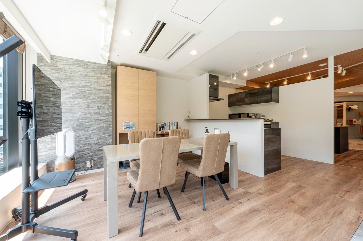 新築戸建からリノベーションマンション、戸建まで、さまざまな住まいのスタイルを体感できるショールームです。設備や建材の展示を通して、住まいのイメージを膨らませ、商談スペースで打ち合わせをしていただくことが可能です。